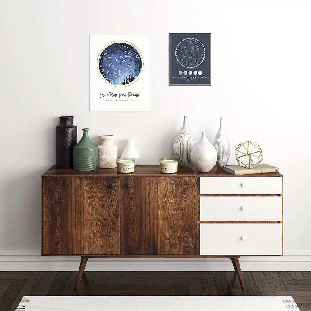 Une décoration pour célébrer un événement important. Un carte représentant les étoiles dans le ciel de ce moment là, imprimée sur une plaque de grande qualité en aluminium.