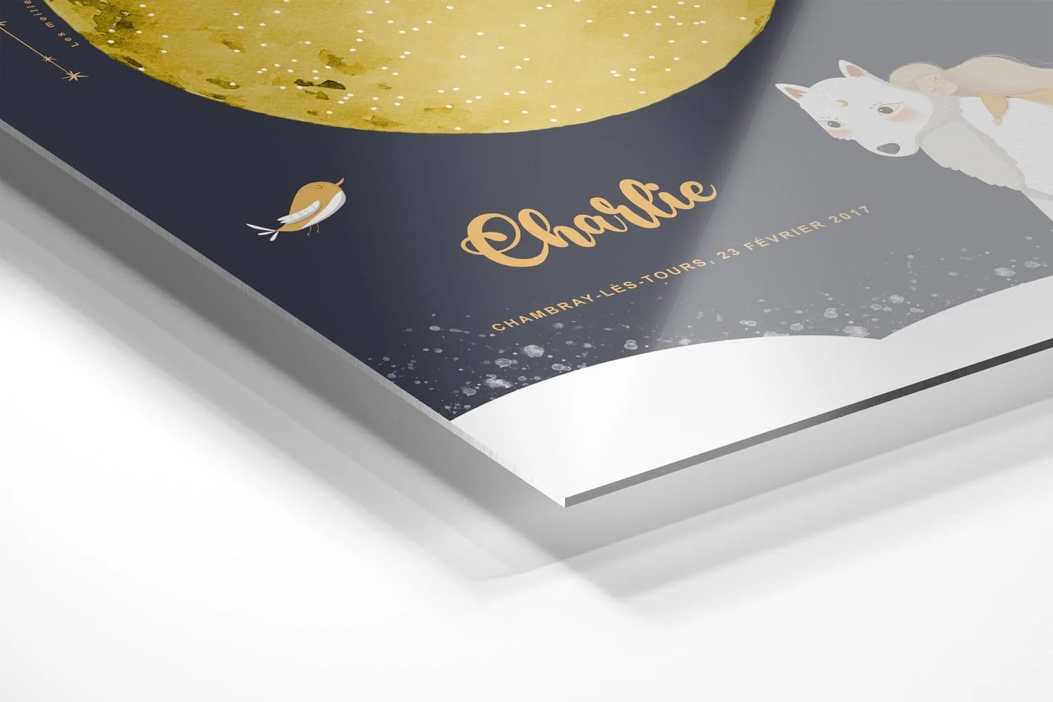 Le papier s’estompe, la toile peut se déchirer, le bois se fendre. C’est pourquoi l’impression de notre carte du ciel personnalisée est faite sur une plaque en aluminium brillante Chromaluxe® :