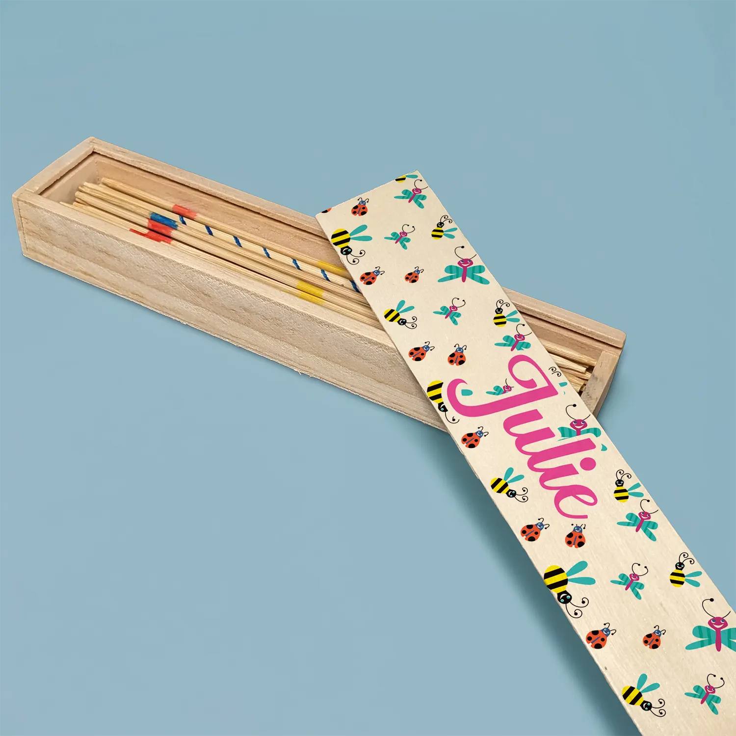 Ce jeu de Mikado avec boîte en bois personnalisée est idéal !