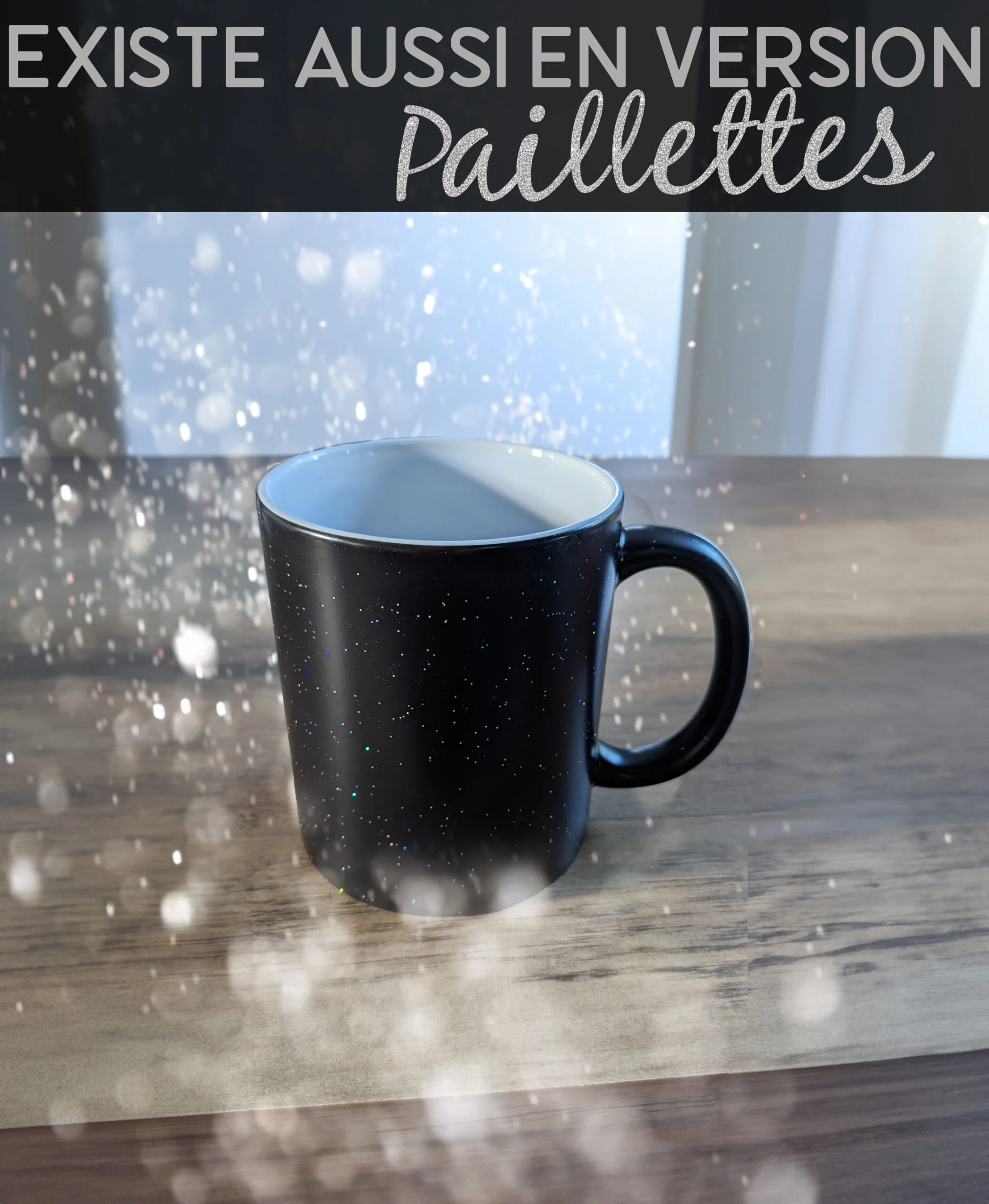 | Couleur de mug | Noir mat, Noir brillant, Noir à paillettes |
