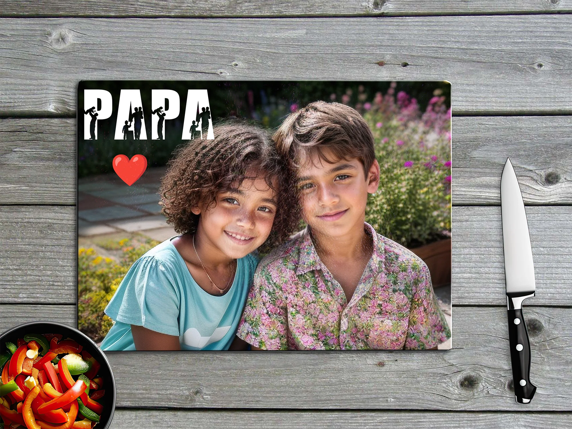 Vous cherchez un cadeau unique et élégant qui impressionnera à coup sûr ? Découvrez notre planche à découper personnalisée en verre, l’accessoire indispensable pour une cuisine stylée et fonctionnelle. Grâce à sa surface texturée et à son revêtement blanc au dos, cette planche à découper est à la fois chic et pratique. Personnalisez-la avec une photo, une illustration ou un texte pour créer un cadeau mémorable et totalement unique.