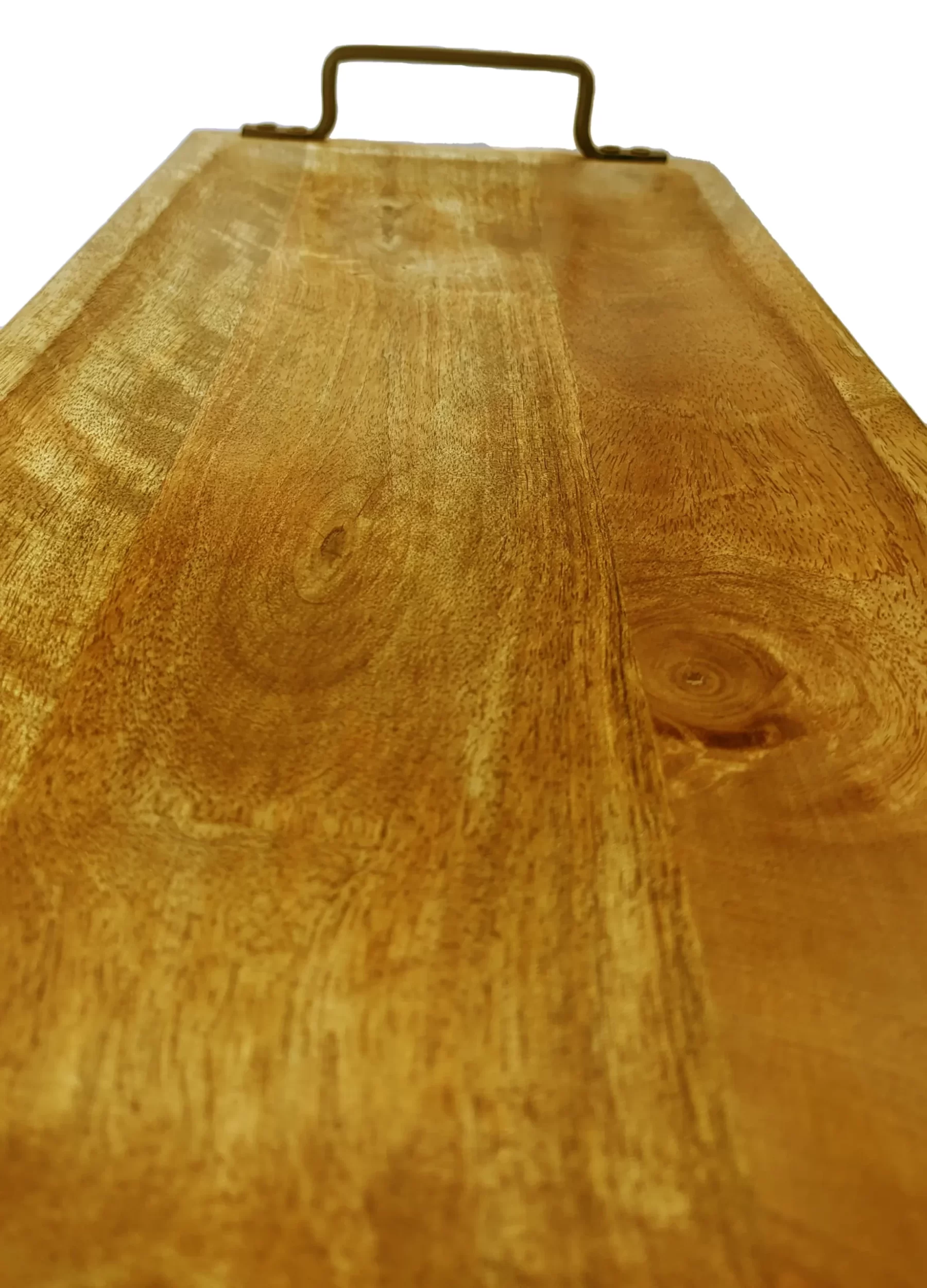 Notre plateau de service en bois personnalisé est fabriqué à partir d’un beau bois de manguier massif, et nous le gravons au laser avec vos initiales ou un mot spécial. Les poignées en métal noir sont en acier inoxydable de haute qualité, et le plateau est fini avec un vernis protecteur.