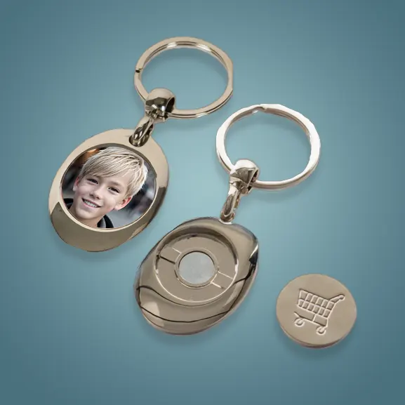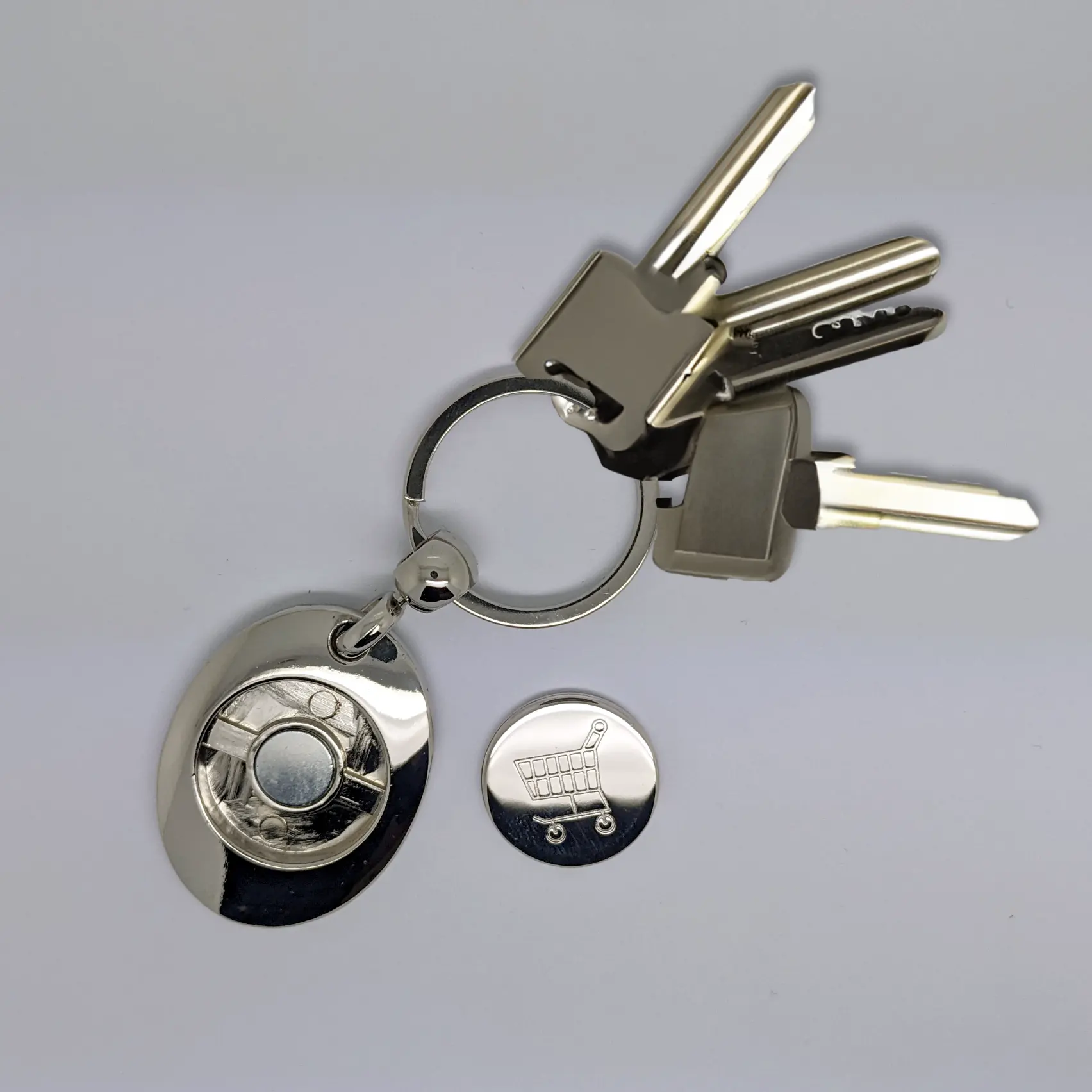 Imaginé pour vous, un porte-clé en métal, non seulement élégant avec sa surface ronde personnalisable, mais aussi incroyablement pratique grâce à son jeton de caddie intégré.
